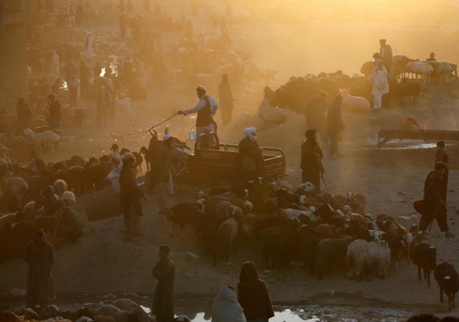 | Khung cảnh náo nhiệt tại khu chợ gia súc ở thủ đô Kabul, Afghanistan, ngày 20/8. |