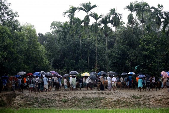 | Những người tị nạn Rohingya đổ về một khu chợ bán gia súc tại khu trại tị nạn Kutupalong để chuẩn bị cho lễ Eid al-Adha. |