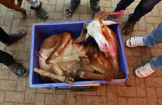 | Cừu, dê, bò là loài động vật thường thấy tại các khu chợ trong dịp lễ quan trọng này. |