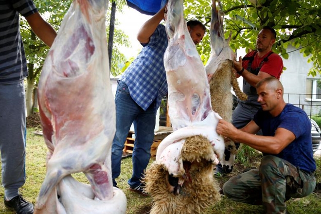 | Sau khi tham gia cầu nguyện, người dân Bosnia tiến hành giết mổ cừu, loài vật được coi là vật hiến tế trong dịp lễ Eid al-Adha. |