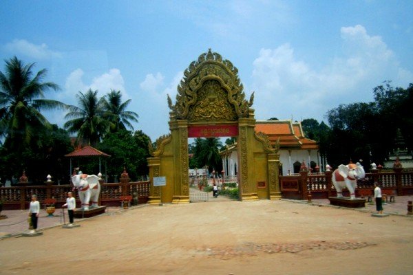Không khó để kiếm được ngôi chùa này. Cái cổng phụ nhỏ xíu xiu nên khó khăn lắm Ulf mới lách vô được. Trong khuôn viên chùa có một trường tiểu học. Trước khi vào chùa tôi mua 1.500 riel hạt sen (còn nằm trong gương sen). Tôi giải thích với Ulf, người Việt coi hoa sen là bông hoa cao quý. Ulf nói không biết ăn bông hoa nên tôi chỉ anh ta cách lặt hạt và ăn. Ăn được một hạt Ulf đòi ăn tiếp rồi ngồi ở gốc cây liên tục lặt hạt sen ăn, quên luôn là tôi chưa ăn hạt nào cả. Gớm thật, nãy bảo không biết ăn cơ chứ!